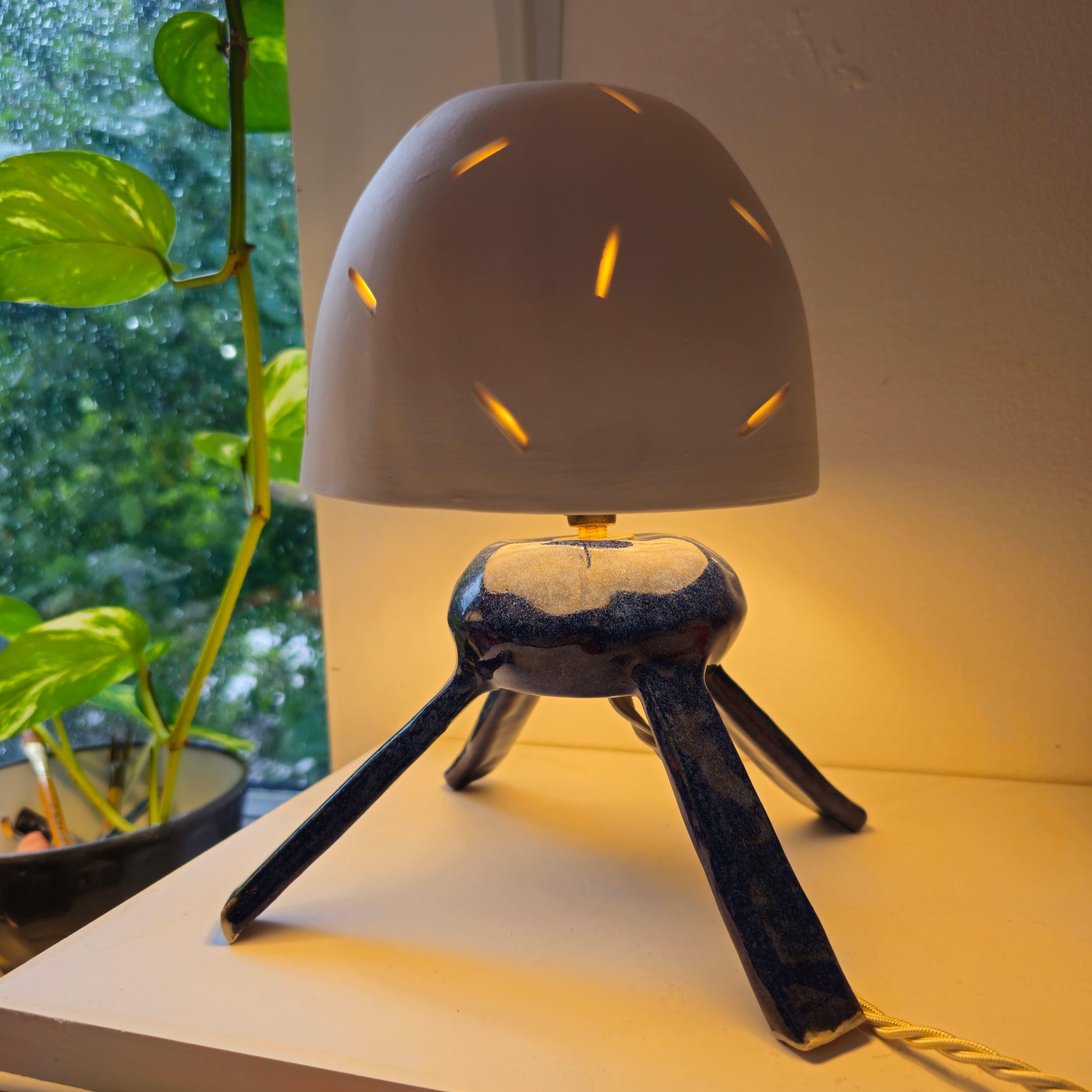 Porcelain shade / stoneware base.