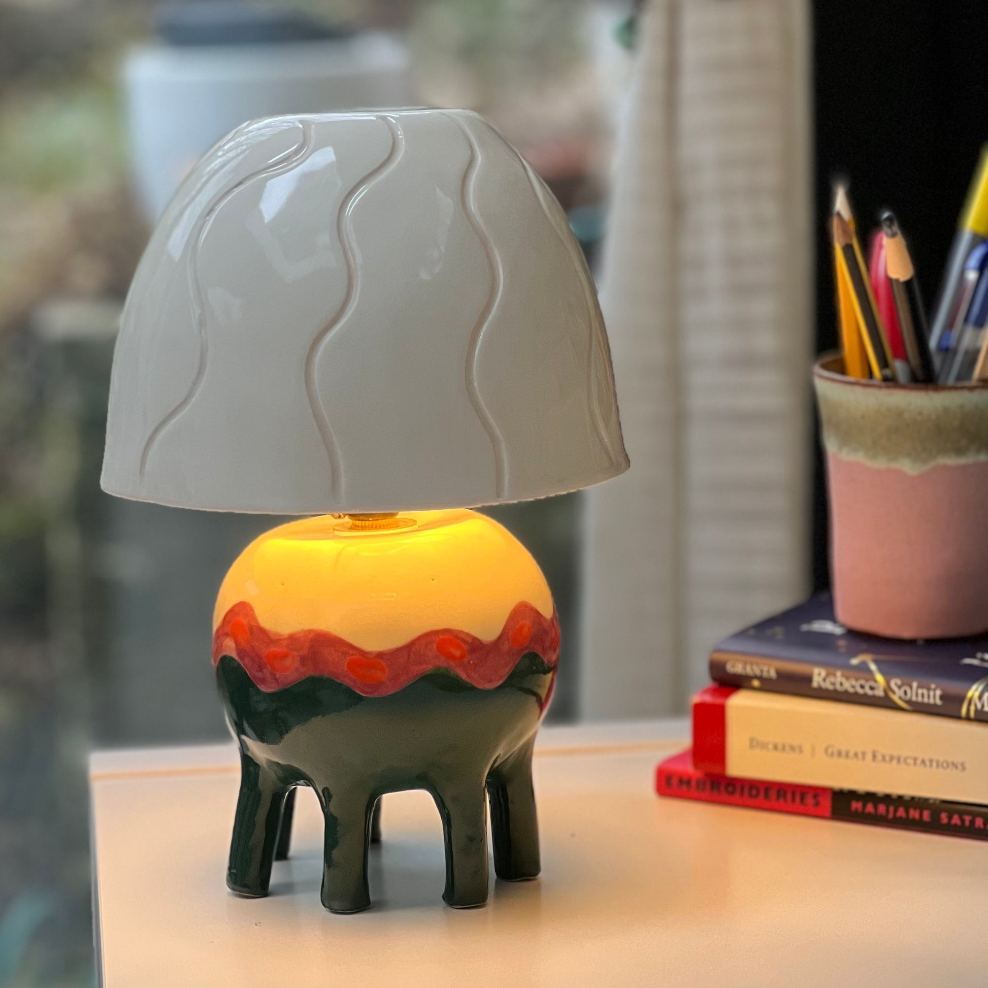 (You will receive the same colour, shape and design as the picture – but please note there will be some natural variation in glaze, patterning, and final character as all of the lamps are uniquely handmade.)